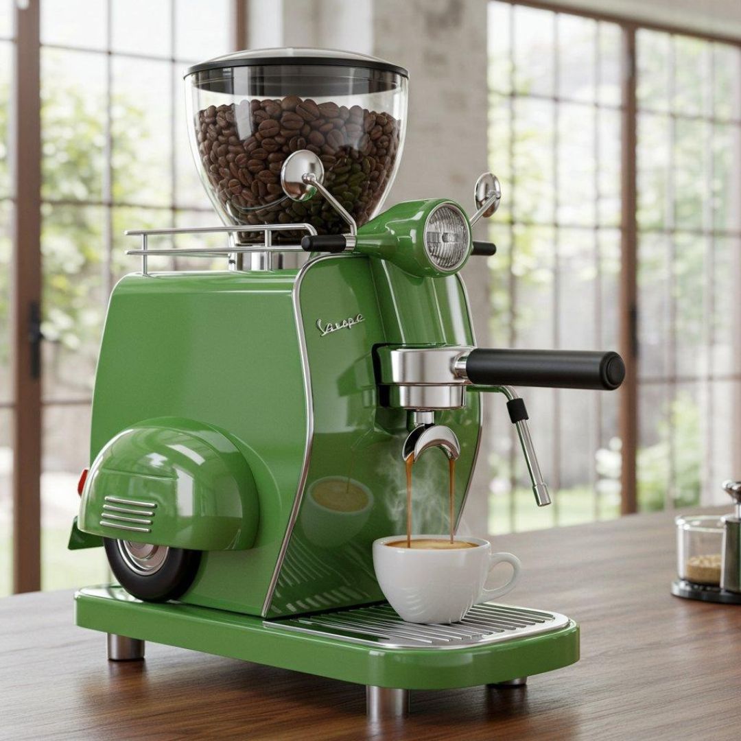 Vespa-Inspired Coffee Maker – Retro Scooter Design Espresso Machine